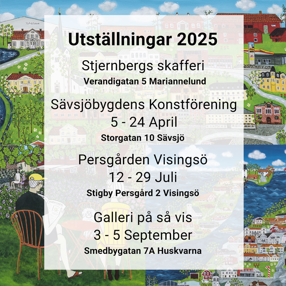 Är du intresserad av min kreativa process och nyfiken på att studera konsten på nära håll? Isåfall är du hjärtligt välkommen att besöka mig på någon av mina utställningar!